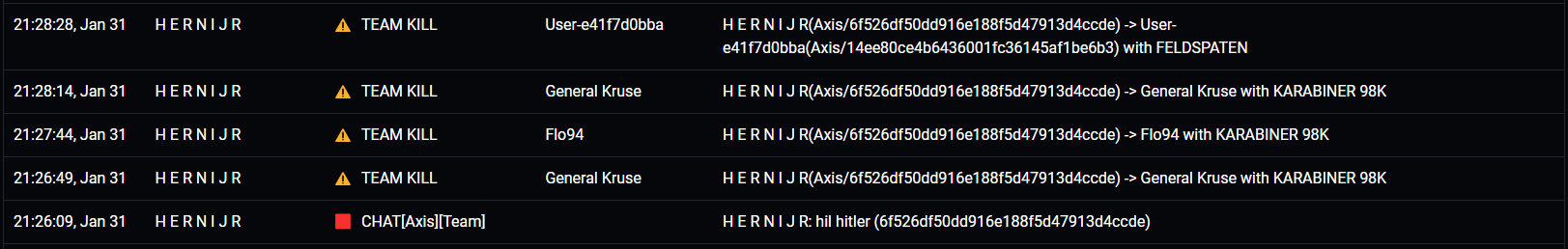 Teamkilling | Heil Hitler im chat