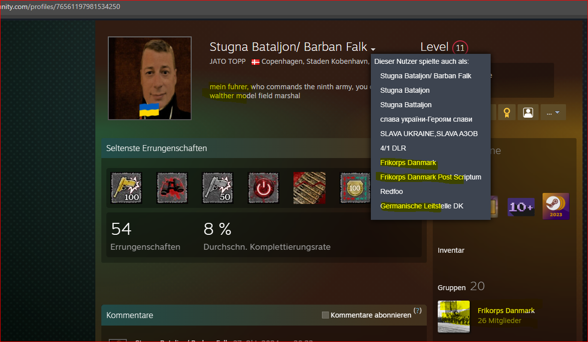 SS Gruppe, SS Bezogende Exnamen (https://de.wikipedia.org/wiki/D%C3%A4nische_SS-Einheiten#Frikorps_Danmark), NS Dinge auf Profil