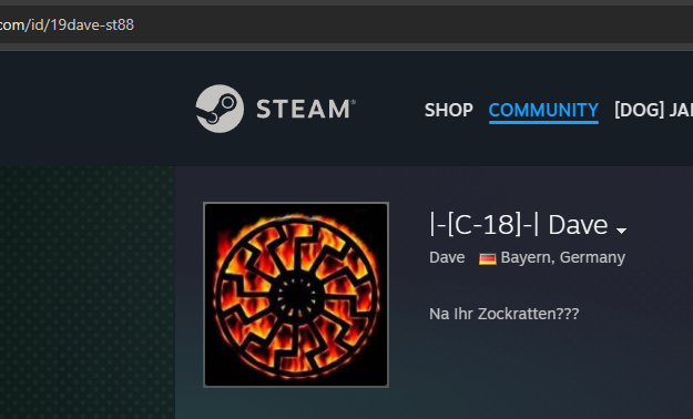 Verwendung von "C18" welches für die Neonazi Gruppe Combat 18 steht. Darüber hinaus Profil mit NS Bezug.