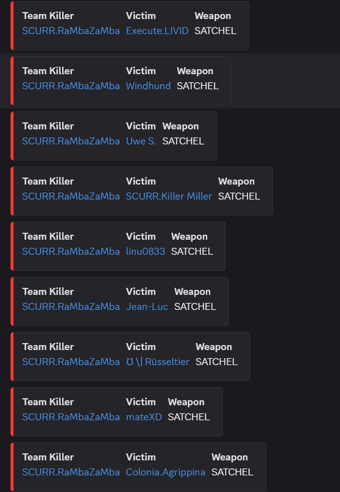 Massen Teamkill mit Satchel (Satchel an eigener Garni platziert) mehrfache Beschwerden