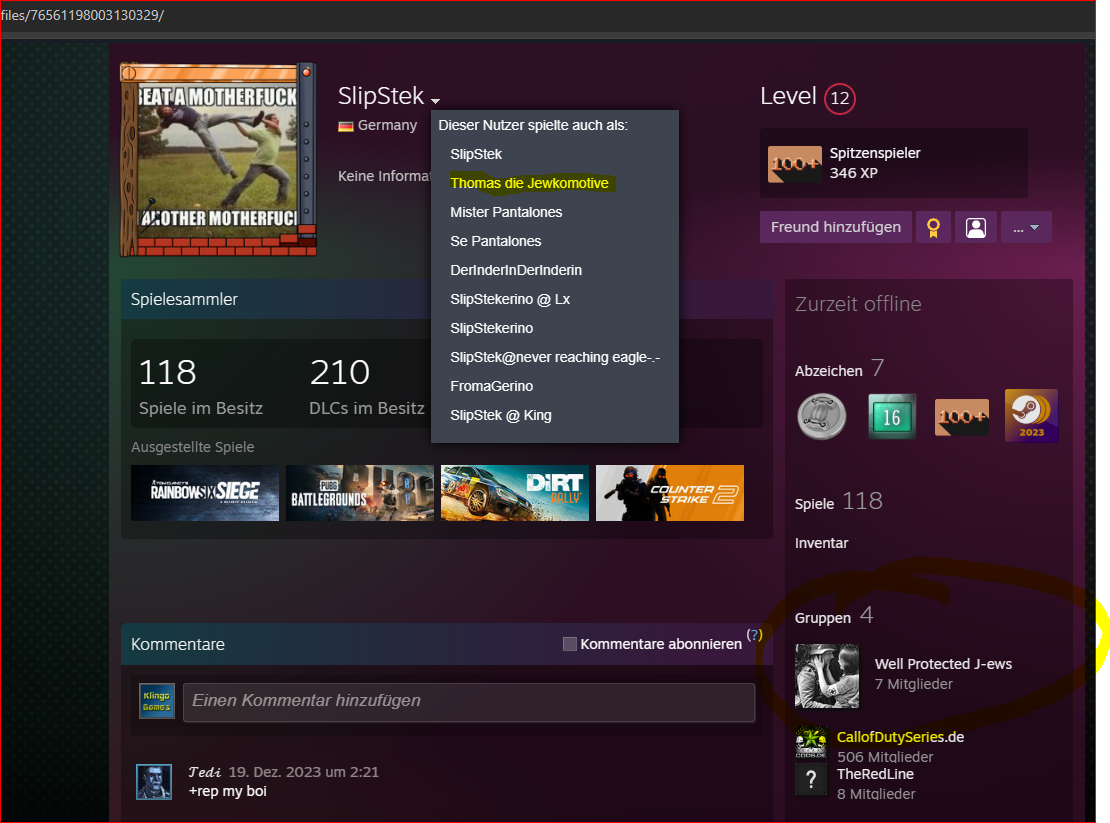 Potenziel Antisemitische Gruppenmitgleidschaften/Namen