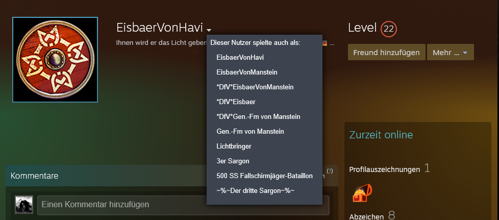 Vorherige Namen wie "EisbaerVonManstein" "DfVEisbaerVonManstein" "DfVGen.-Fm von Manstein" "Gen.-Fm von Manstein" "500 SS Fallschirmjäger-Bataillon"