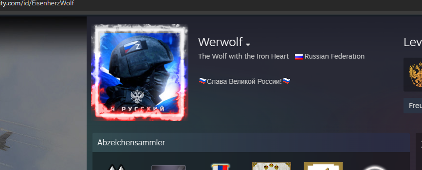 Profil verherrlicht den Völkerrechtswiedrigen Angriffskrieg auf die Ukraine, Mitgliedschaft in einer Gruppe die den Krieg ebenfalls Verherrlicht: https://steamcommunity.com/groups/ilovemyhomelandrussia/discussions/0/5913829825694918483/