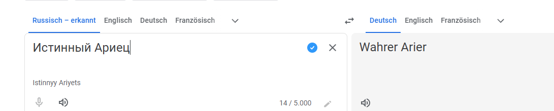 Verwendung des Begriffs "Истинный Ариец" (Wahrer Arier), der stark mit rassistischen und rechtsextremistischen Ideologien verbunden ist.