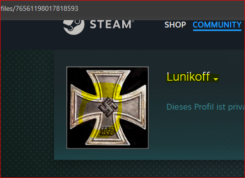 HK auf Profilbild, Rechtsrochband als Name. Also NS Bezüge https://de.wikipedia.org/wiki/Die_Lunikoff_Verschw%C3%B6rung