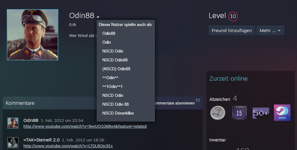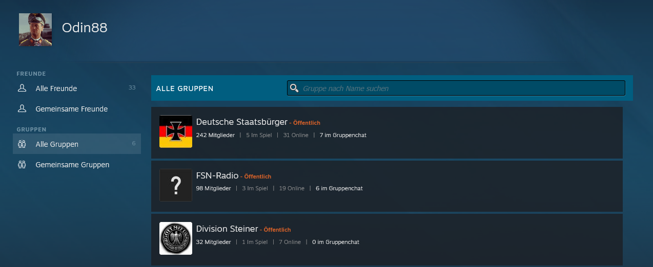 Vorherige Namen und Mitglied in einer Rechten Steamgruppe