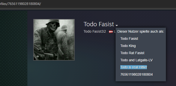 Verwendung von "Fasist" im Namen, was auf eine faschistische Gesinnung hinweist. Der Alias "Todo ist real Hitler" impliziert eine Bewunderung oder Verherrlichung von Adolf Hitler, eine zentralfigur der rechtsextremen Ideologie.