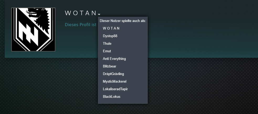 Durch das auseinandergeschriebene Wotan = Will Of The Aryan Nation“, zu Deutsch: ‚[Der] Wille der arischen Nation‘, mit einer Anlehnung an den germanischen Gott Wotan. + Wolfsangel im PB