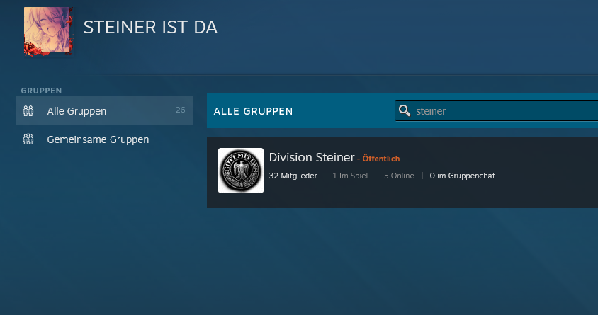 Mitglied in einer Rechten Steamgruppe