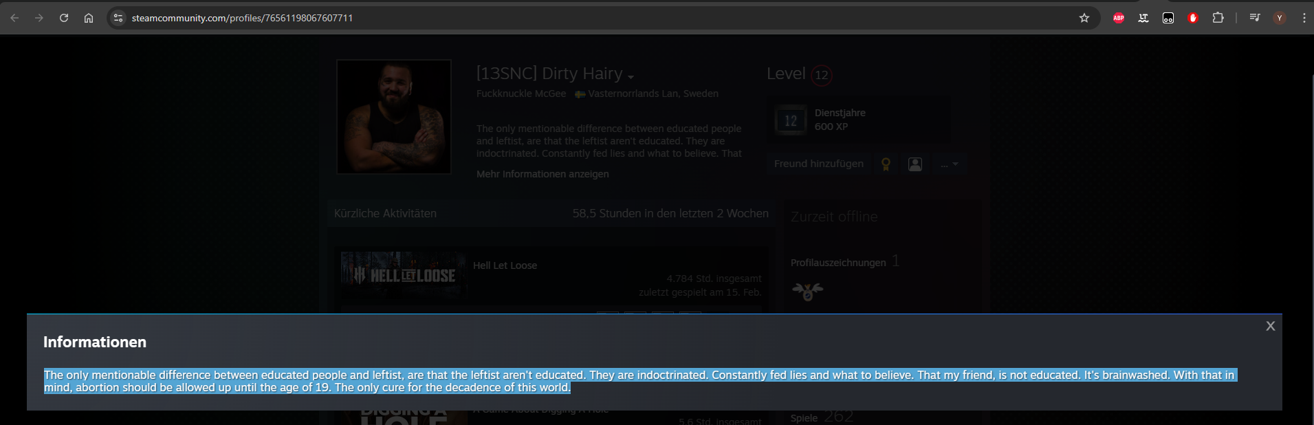 Hat Zimlich Rechtsradikale Mordaufrufe auf seinem Steamprofil
