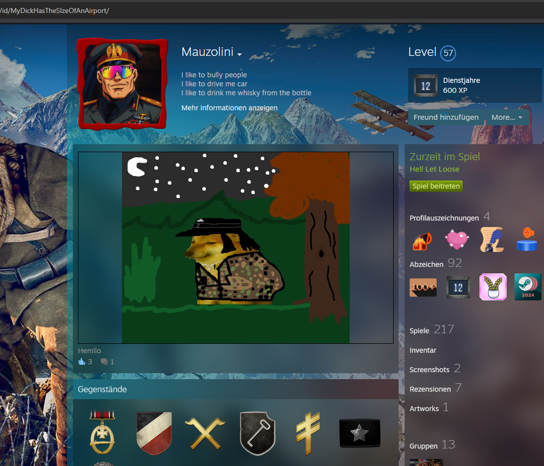 Benito Mussolin als Profilbild, NS Inhalte auf Profil
