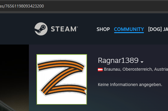 Verhelichung des Russischen Angriffskrieges auf die Ukraine, Z Georgsband auf Profil, ein Zeichen welches als (Strafrechtlich relevante) unterstützung des Angriffskrieges zu werten ist.