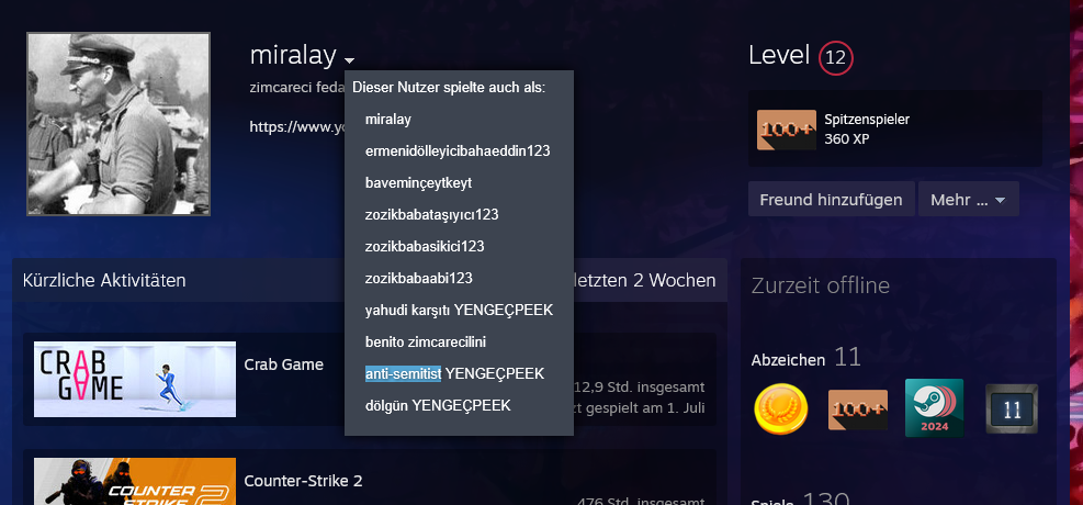 Vorheriger Name "anti-semitist", was eindeutig auf eine feindliche Einstellung gegenüber Juden hinweist.