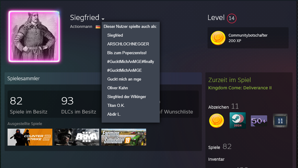 Vorheriger Name "ARSCHLOCHNEGGER"