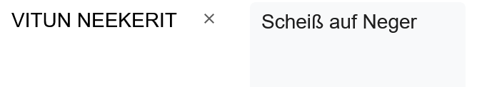 Vorheriger Name "VITUN NEEKERIT" übersetzt "Scheiß auf Neger"