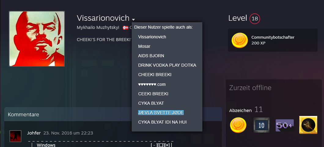 Vorheriger Name "JÆVLA SVETTE JØDE"