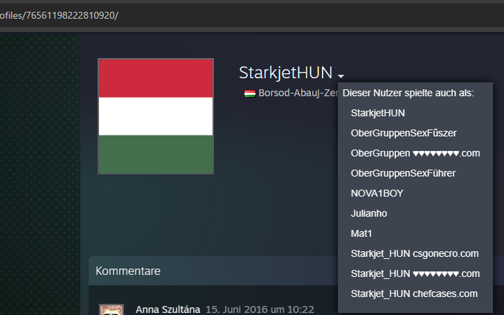 Der Nutzer verwendet den Namen "OberGruppenSexFűszer", der eine Anspielung auf den Titel "Obergruppenführer" aus dem nationalsozialistischen Regime darstellt.