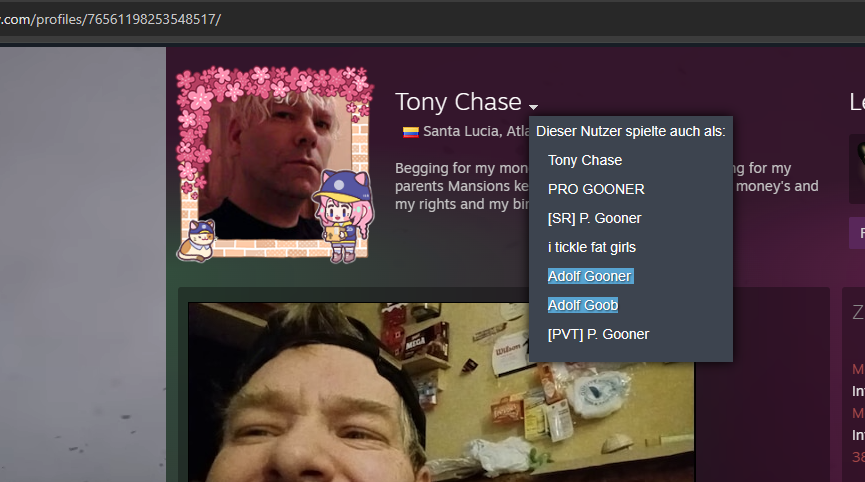Verwendung des Namens "Adolf Gooner", was eine Verbindung zu Adolf Hitler suggeriert und potenziell positive Assoziationen zu einer historischen Figur mit extremistischen Ansichten hervorrufen kann.