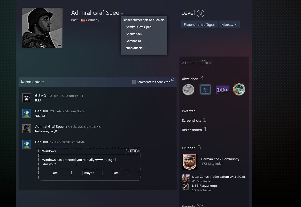 vorheriger name "combat 18" sowie mitgleid in mehreren NS steamgruppen