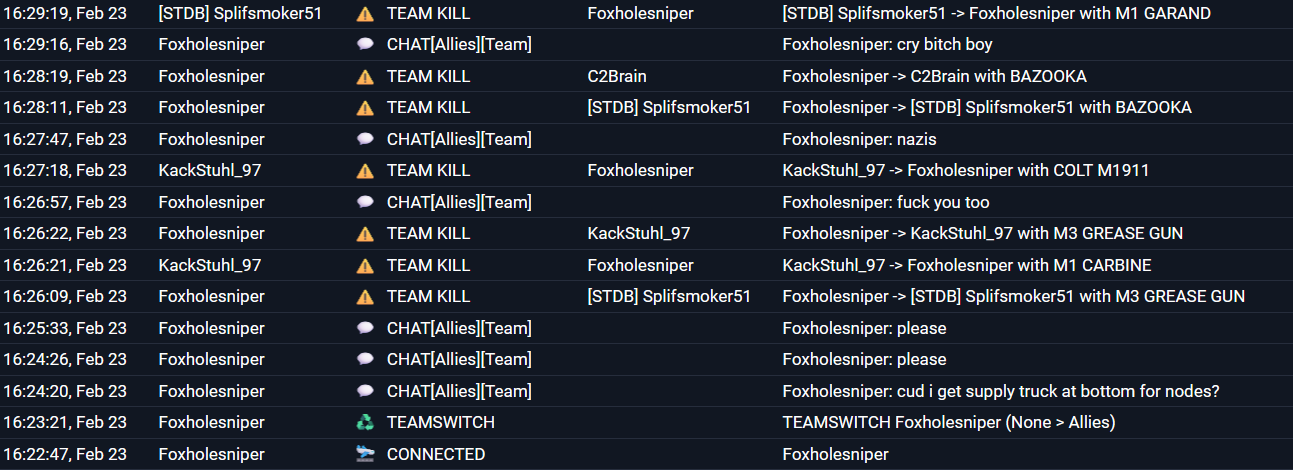 Beleidigend Spieler als Nazis + Teamkill