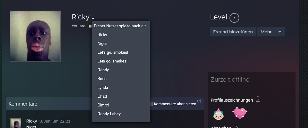 Vorheriger Name | Kommentar | sowie Herkunft im Profil