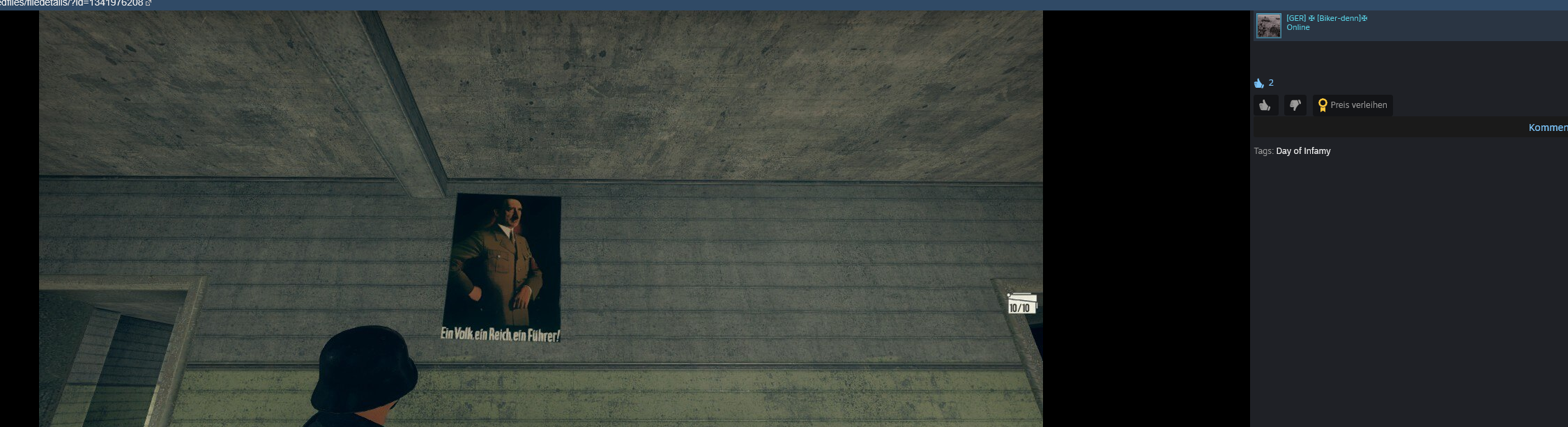 Mehrere Screenshots mit beschreibungen wie z.b "endlich der endsieg" Für´s Vaterland" ebenso sind Screenshots vorhanden von propaganda Plakaten ebenso auch von einen Adolf Hilter Bild.