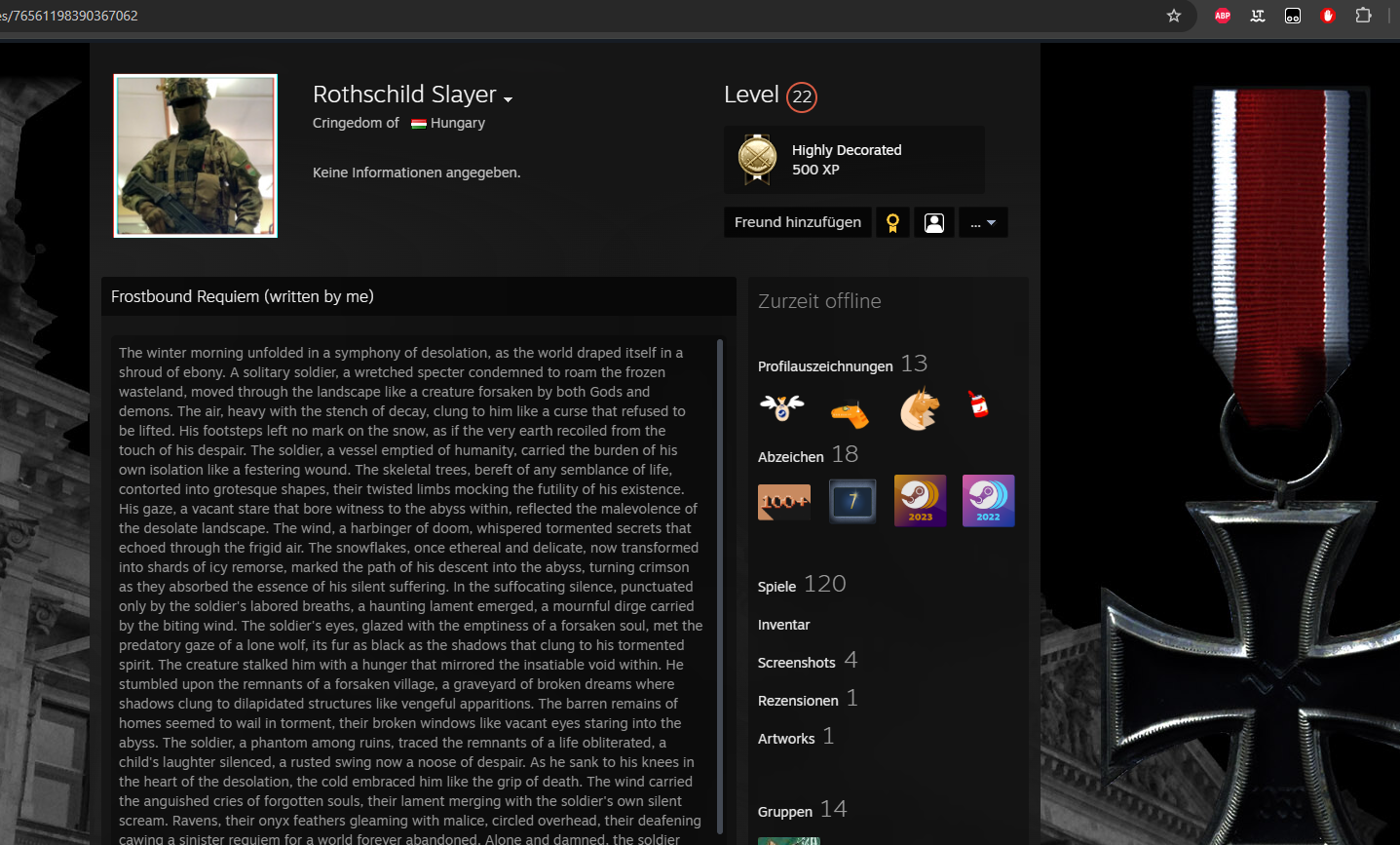 Antisemitischer Name, Harkenkreuz auf Profil.