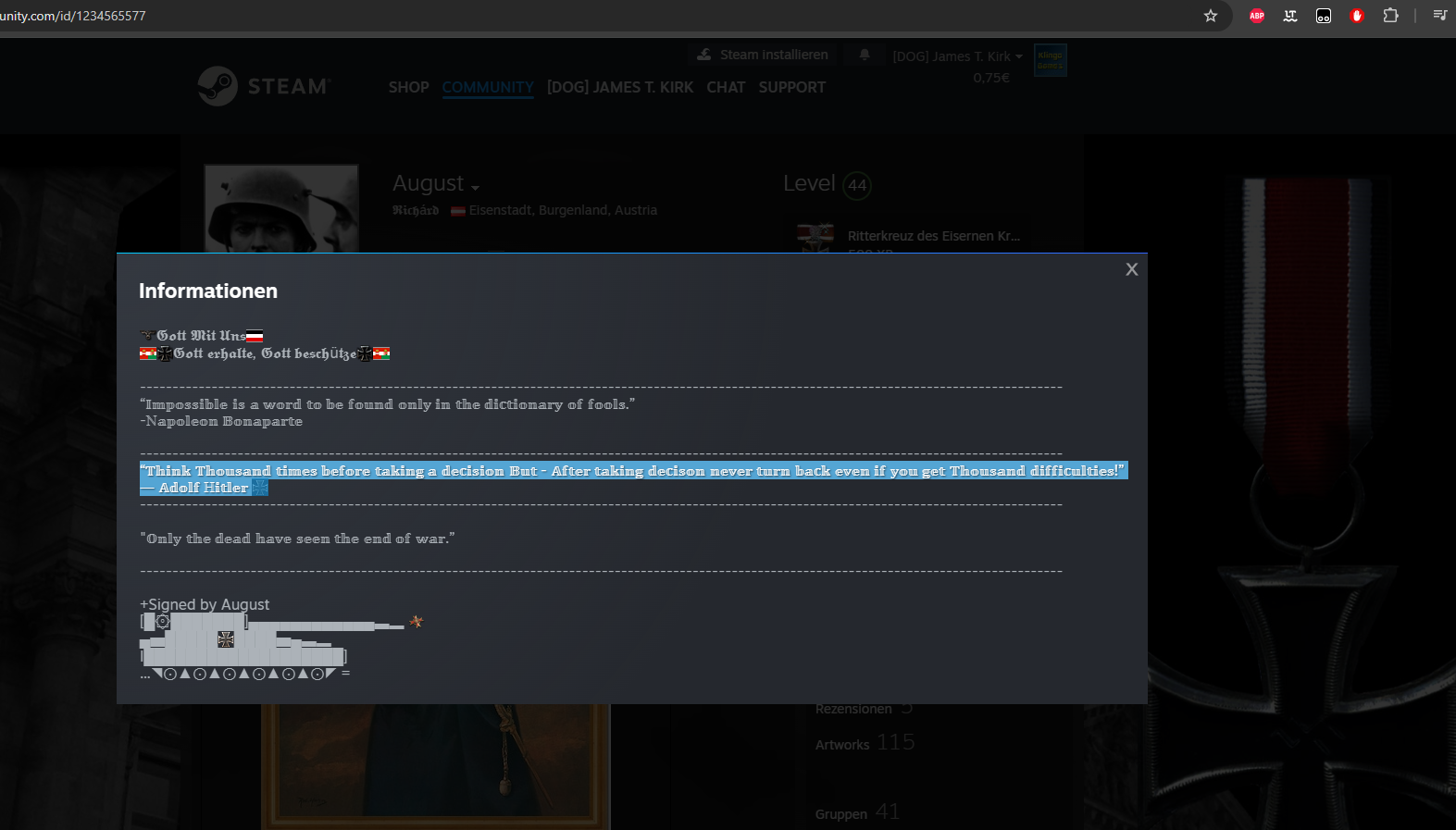Adolf Hitler Zitat auf Profil