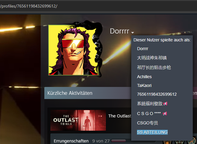 Der Nutzer hat "SS ABTEILUNG" im Aliaspaket, was eine direkte Bezugnahme auf die SS (Schutzstaffel) ist, eine paramilitärische Organisation des nationalsozialistischen Deutschlands.