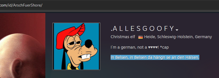 Der Verweis auf "In Belsen, in Belsen da hängn se an den Hälsen" könnte als Anspielung auf historische NS-Verbrechen verstanden werden, was möglicherweise eine verharmlosende oder verherrlichende Haltung hinsichtlich dieser Ereignisse widerspiegelt.