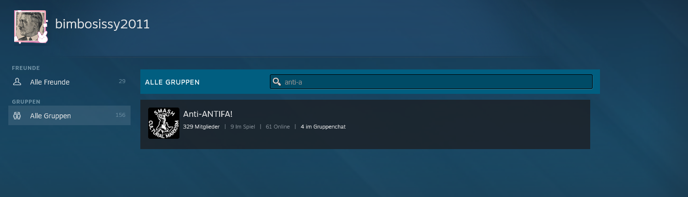 Hat als PB Adolf Hitler und mehrere Rechte Steamgruppen