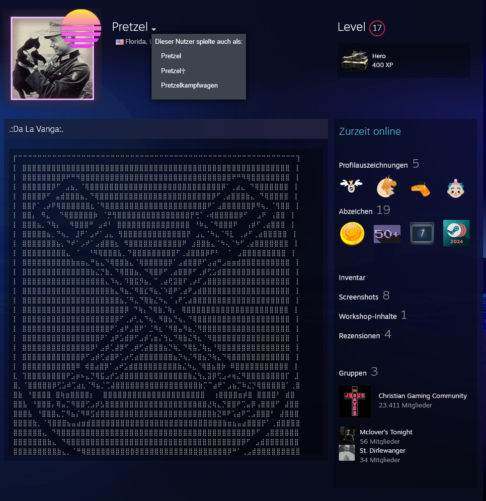 ascii art vonSS-Sondereinheit Dirlewanger auf dem Profil ebenso in der Steamgruppe St. Dirlewanger
