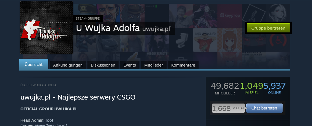 Mitglied in einer Steamgruppe namens "bei onkel Adolf"