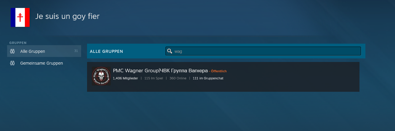 Mitglied in 2 Wagner Steam Gruppen
