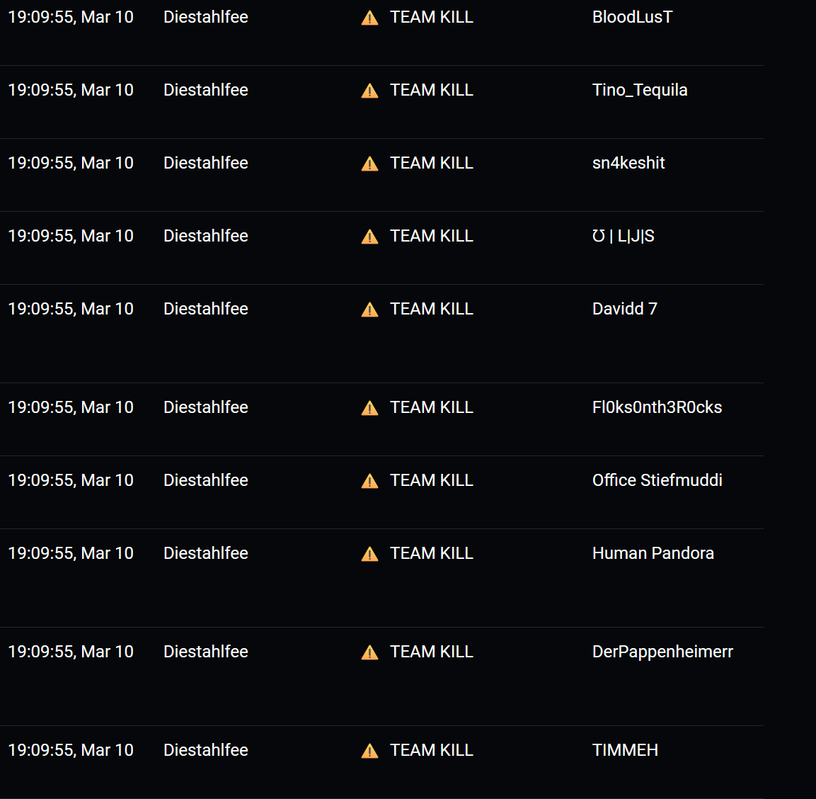 Schießt mehrfach mit dem Tank auf einen Truck und teamkillt den kompletten Truck (sieh Foto)