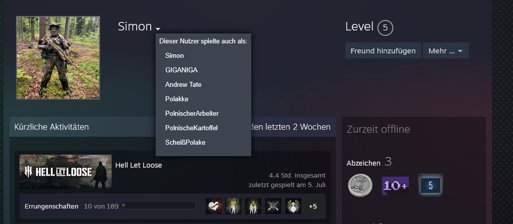 Vorherige Namen "Polakke" welcher als beleidigung gilt und "ScheißPolake"