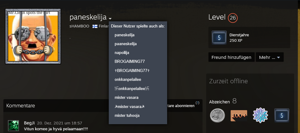 vorheriger name enthält Hakenkreuze "卐onkkanpelailee卐" ebenso ist auf dem PB ein Bild mit einen Hitlerbärtchen