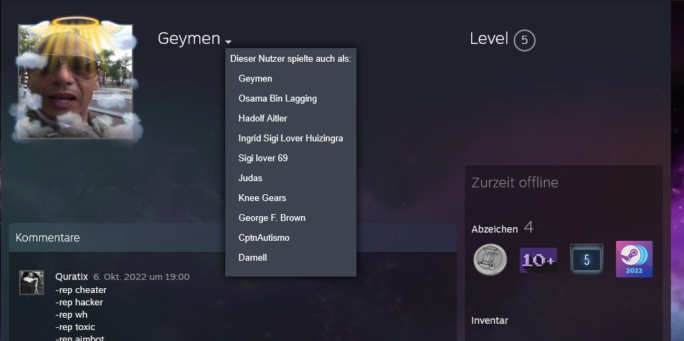 Vorheriger Name "Hadolf Aitler" anspielung auf Adolf Hitler