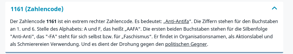 Wolfsangel im Namen | 88 im Namen | 1161 zahlencode = „Anti-Antifa“