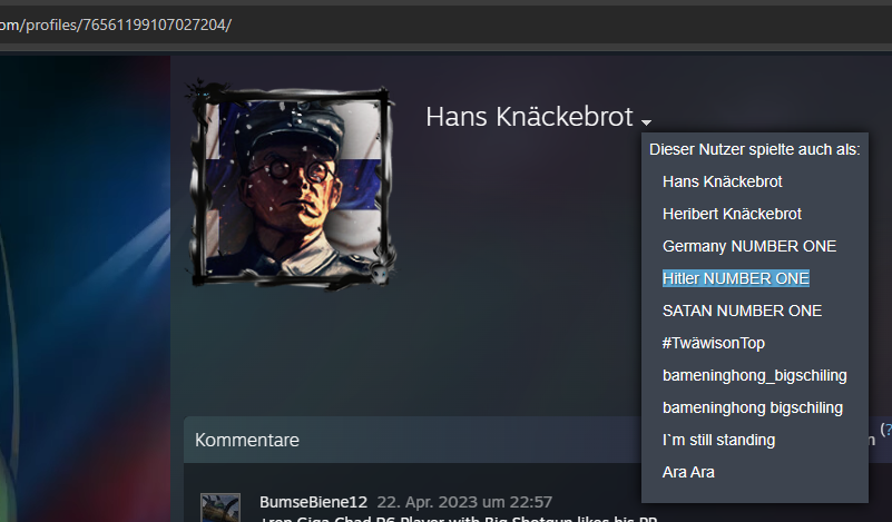 Verwendung des Namens "Hitler", was eindeutig eine Bezugnahme auf rechtsextreme Ideologien und historische Figuren ist, die mit Nationalsozialismus und Rassismus in Verbindung stehen.