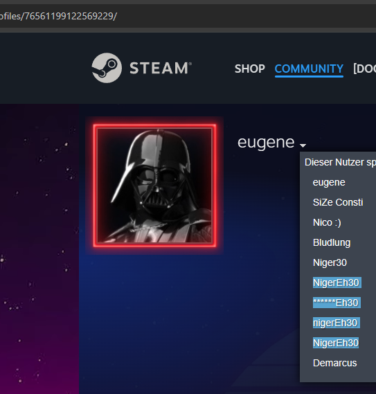 Verwendung des N-Worts in mehreren Alias-Namen, was einen klaren rassistischen Bezug herstellt.