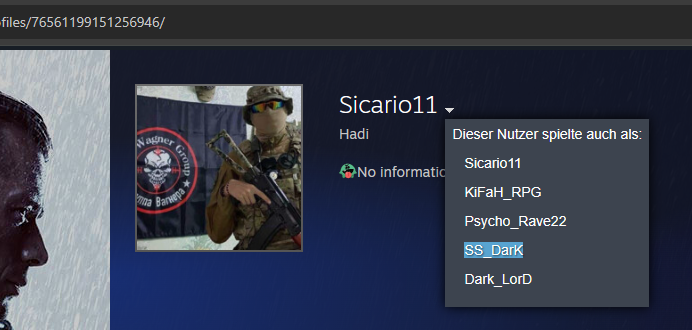 Verwendung des Begriffs „SS_DarK“, was eine Referenz zur Schutzstaffel (SS) im nationalsozialistischen Deutschland ist, die für zahlreiche Kriegsverbrechen verantwortlich war. + Wargnergruppe Flagge im Hintergrund (Kriegsverbrechen in der Ukraine)