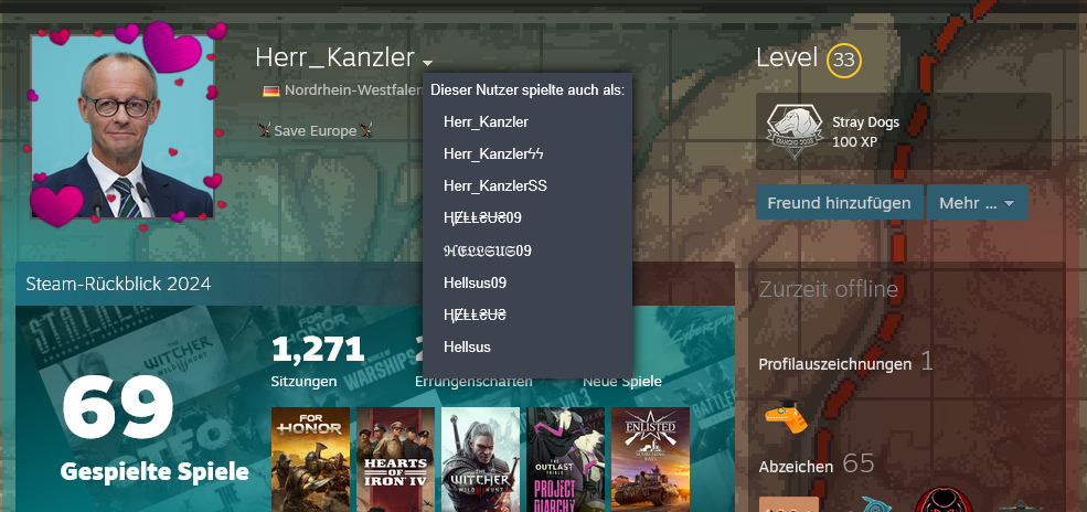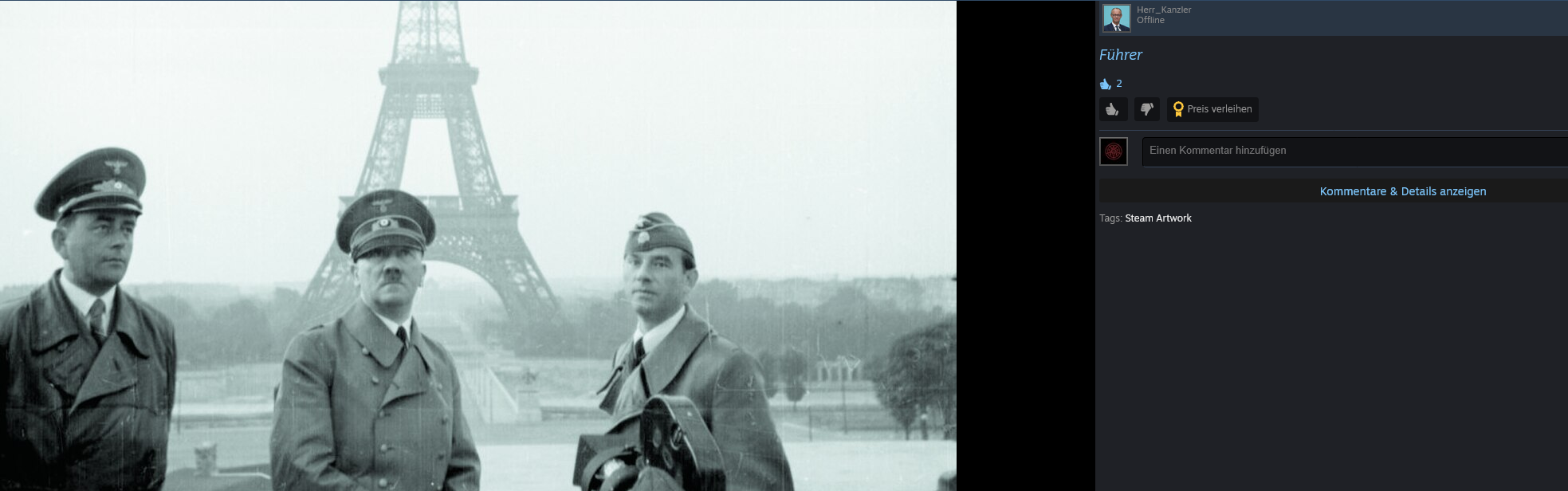 Vorherige Namen sowie hat er in seinen Artworks ein Bild von Adolf Hitler