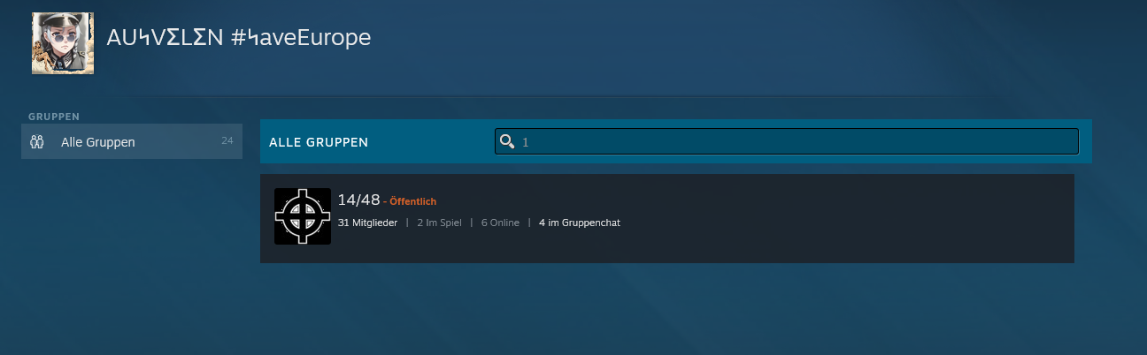 Mitglied der Steamgruppe 14|48 bzw 14|88 und anderen Steamgruppen | Ebenso SS runen im Spielernamen