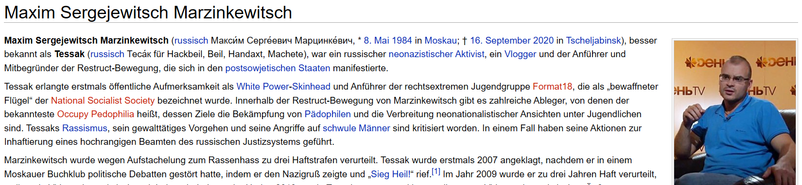 Profilbild und name nemen Bezug auf einen Russischen Rechtsextremisten