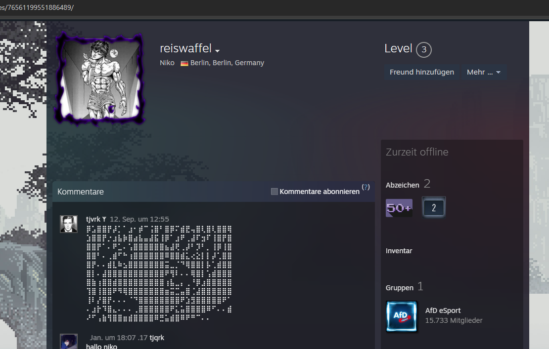 Mitglied in einer Gruppe mit dem Namen "AfD eSport", was auf eine Verbindung zur rechtsextremen Alternative für Deutschland (AfD) hindeutet.