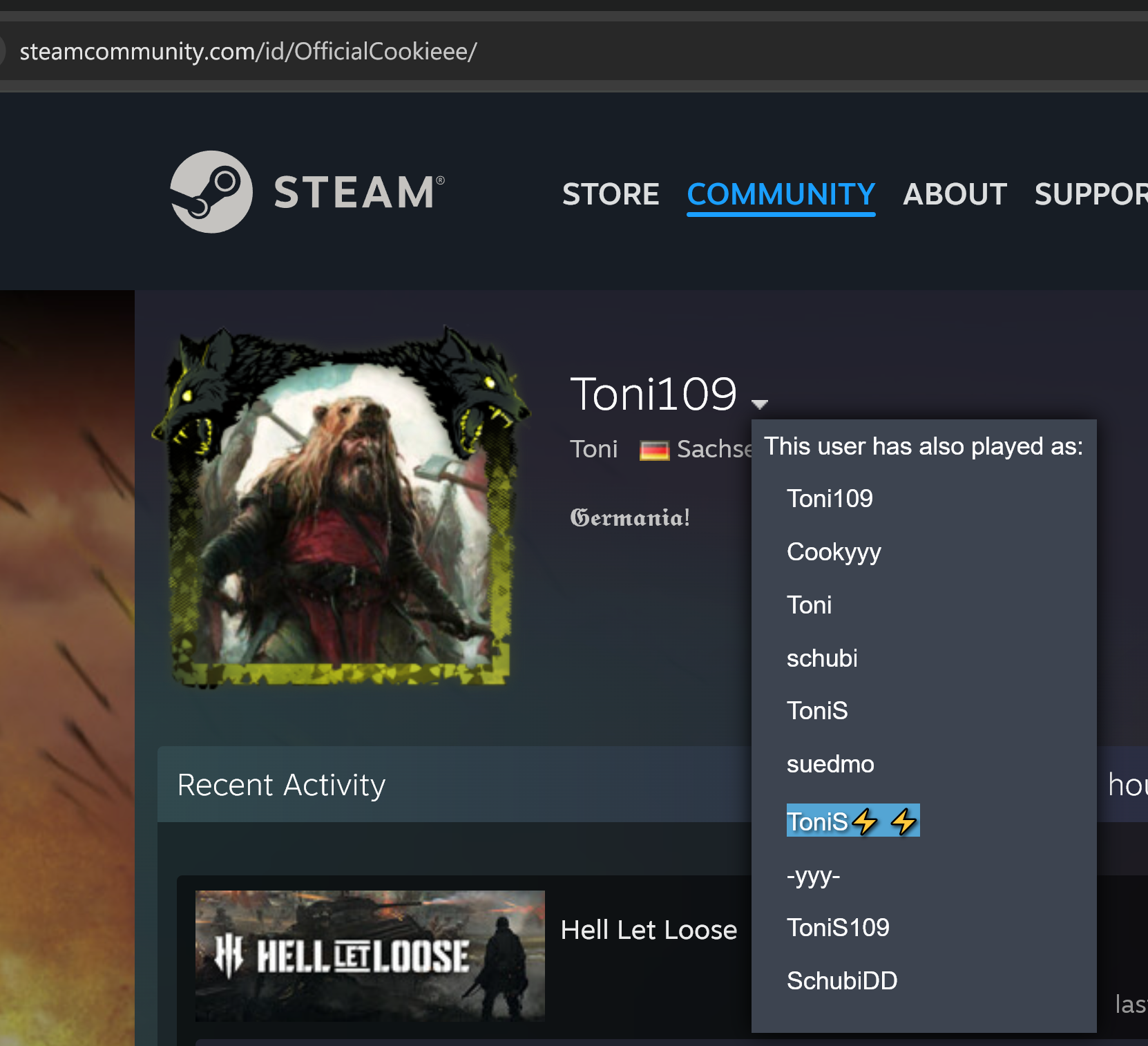 Type of issue: 88 im Namen, "ToniS⚡ ⚡" SS im Namen, "GERMANIA!" im profil,