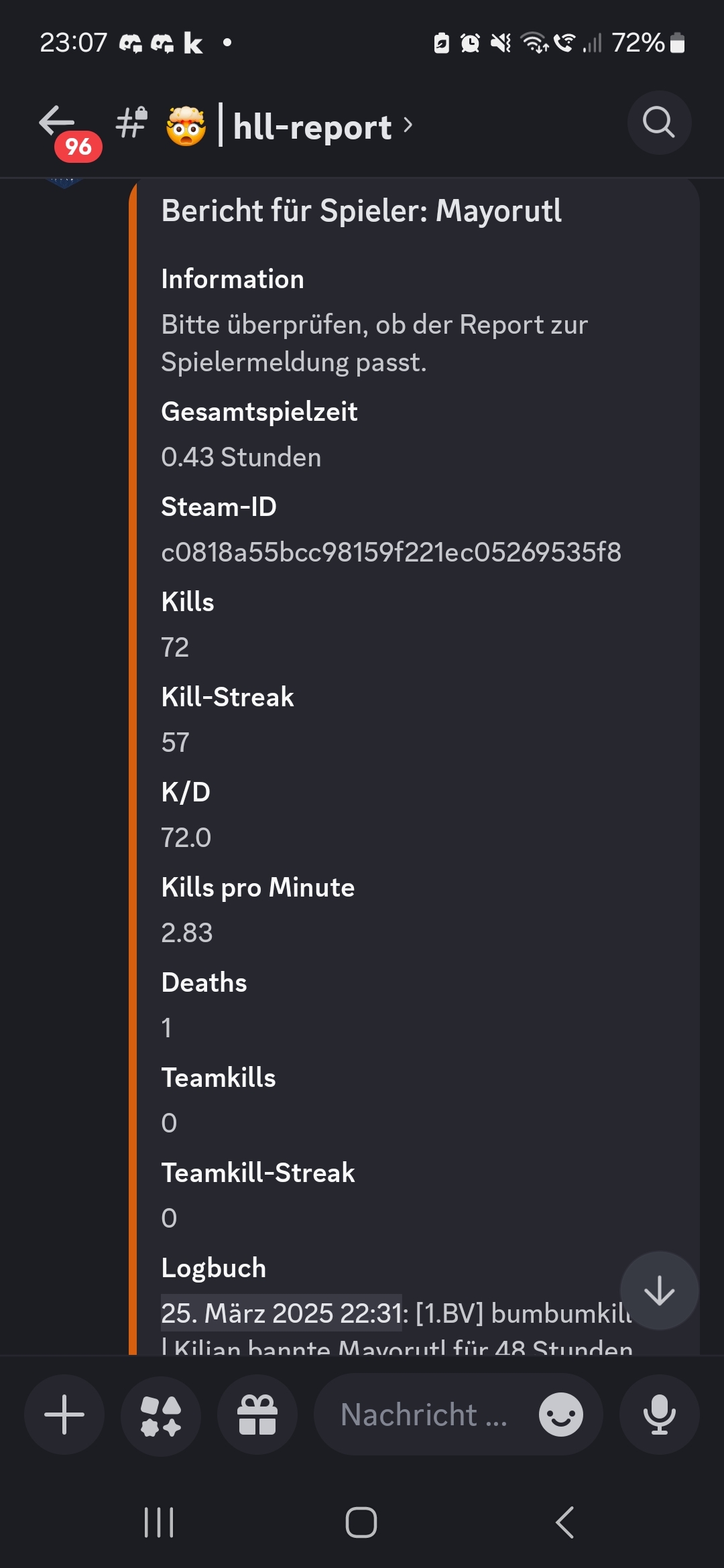 !admin Spieler XYZ redet nicht] 1 MESSAGE 1